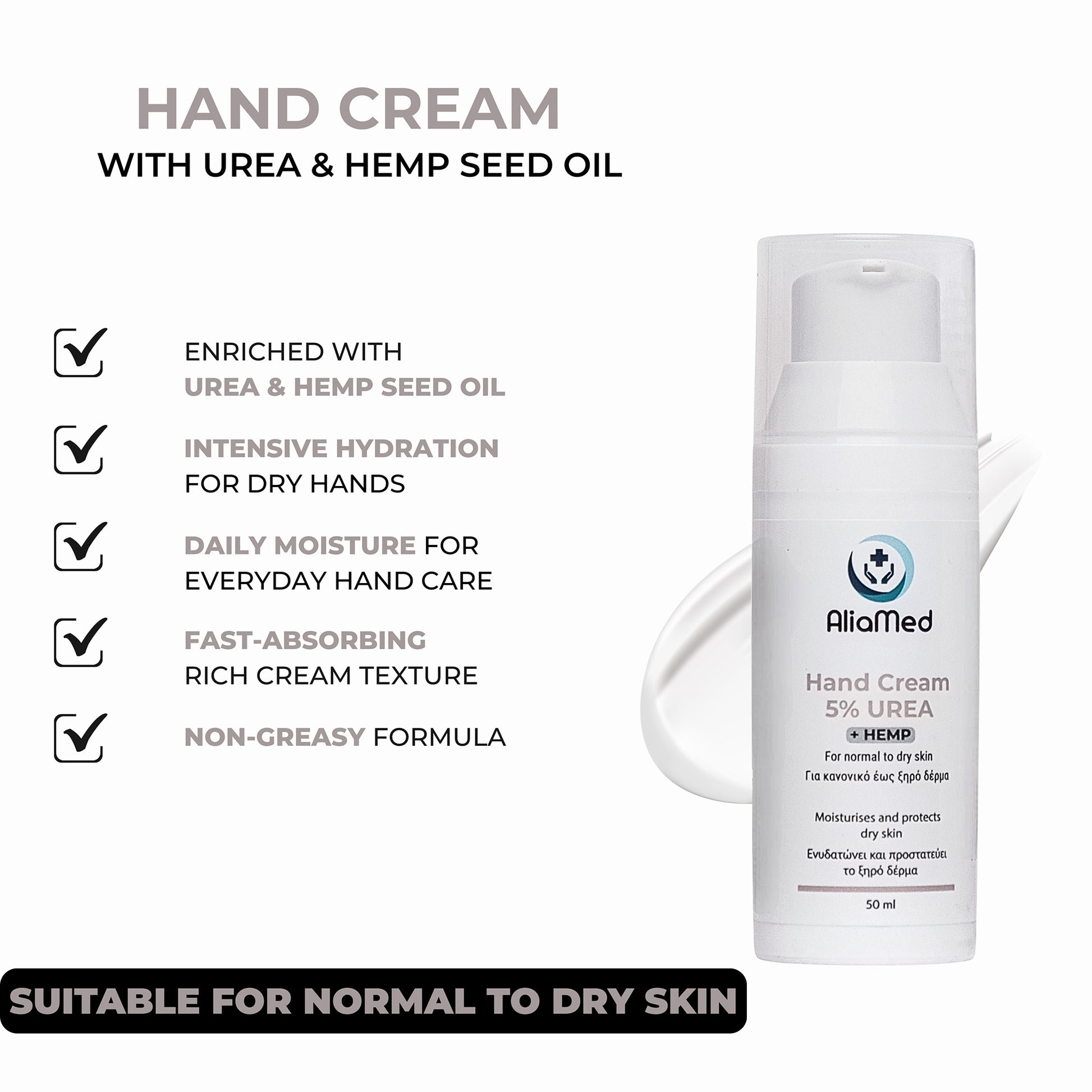 Crema per le mani UREA 5% + CBD isolato 50ml, idratante mani secche